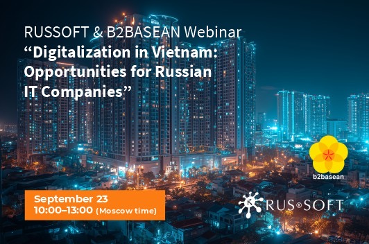 On September 23 at 11:00 a.m. (Moscow time), RUSSOFT will host a joint webinar with B2BASEAN «Digitalization in Vietnam: Opportunities for Russian IT Companies».