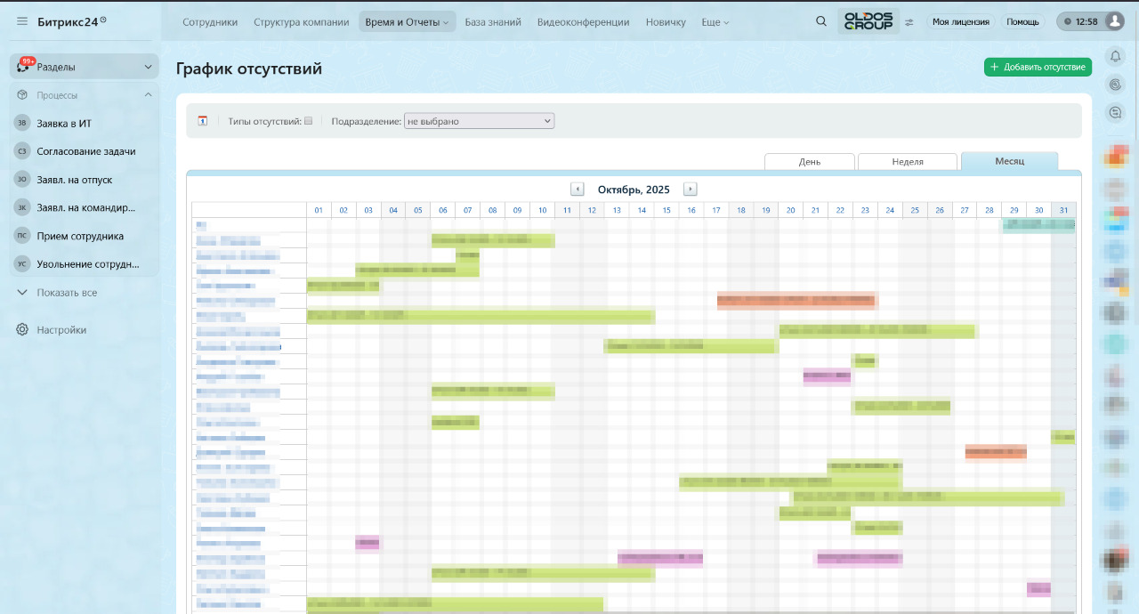 В компании была внедрена единая цифровая платформа Битрикс24 для централизации процессов, автоматизации HR и проектной работы. С её помощью сотрудники получили удобный доступ к задачам, графикам отсутствий, новостям и корпоративным процессам в одном месте, а руководство — прозрачный контроль и аналитику.