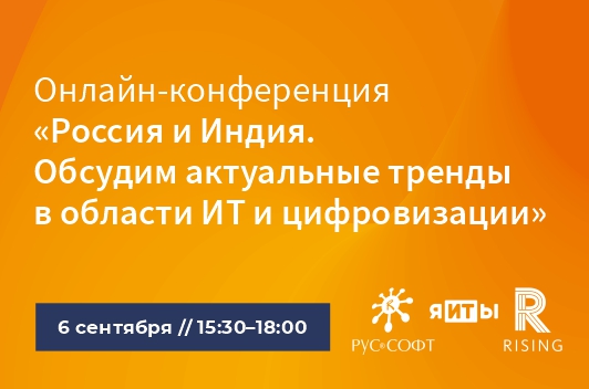 6 сентября в 15:30 МСК РУССОФТ, Некоммерческое Сообщество цифровых управленцев «я-ИТ-ы» и RISING (Russia India Special Interest Group) в рамках деловой программы ИТ-Форума РУССОФТ 2023 проведут международное онлайн-мероприятие под названием «Russia and India. Let’s discuss actual trends in IT and Digitalization» (Россия и Индия. Обсудим актуальные тренды в области IT и цифровизации).