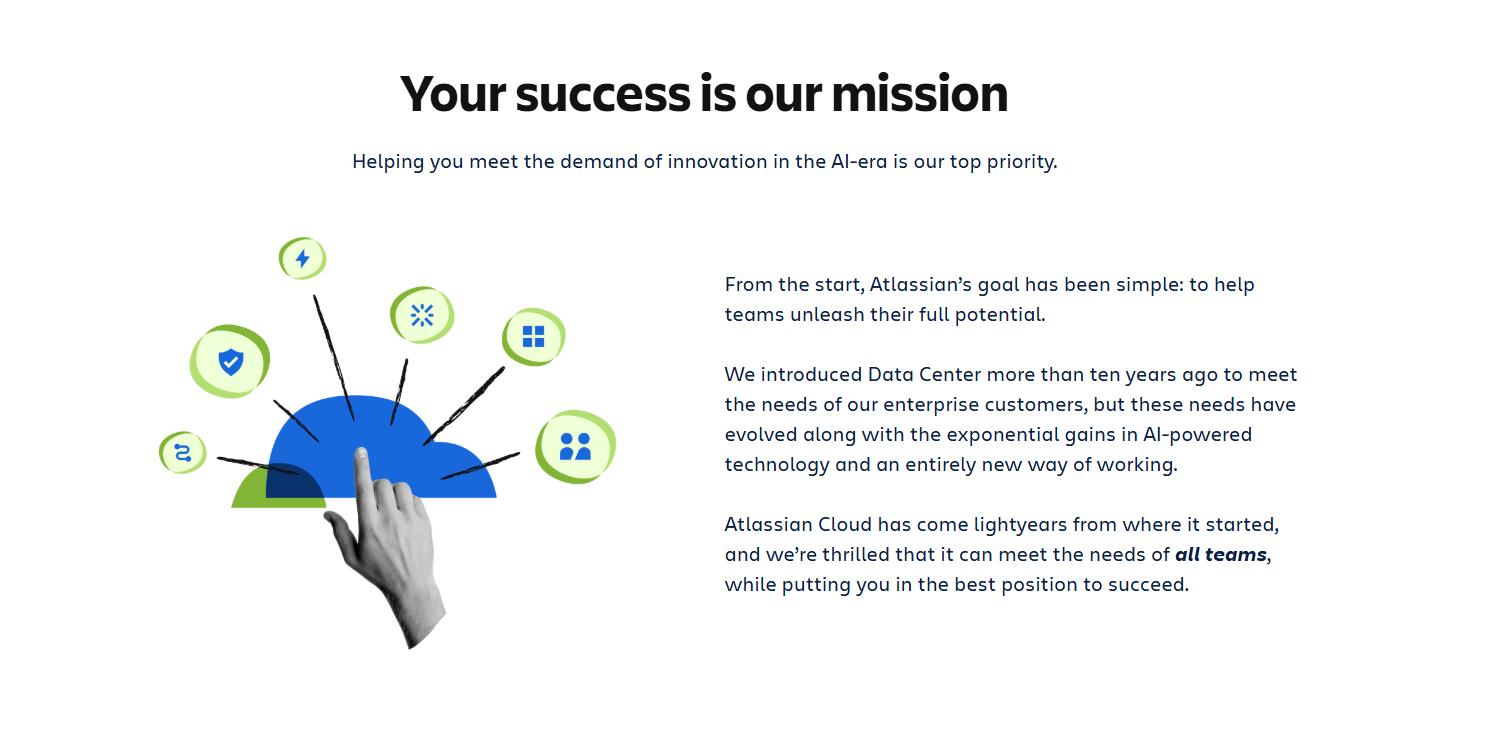 Теперь же Atlassian постепенно прекращает поддержку продуктов Data Center, таким образом активно продвигая свою облачную стратегию и предлагая клиентам переходить на облачные версии своих продуктов. Постепенное сворачивание поддержки должно пройти в течение следующих 3 лет, чтобы у клиентов было достаточно времени для определения дальнейших действий.