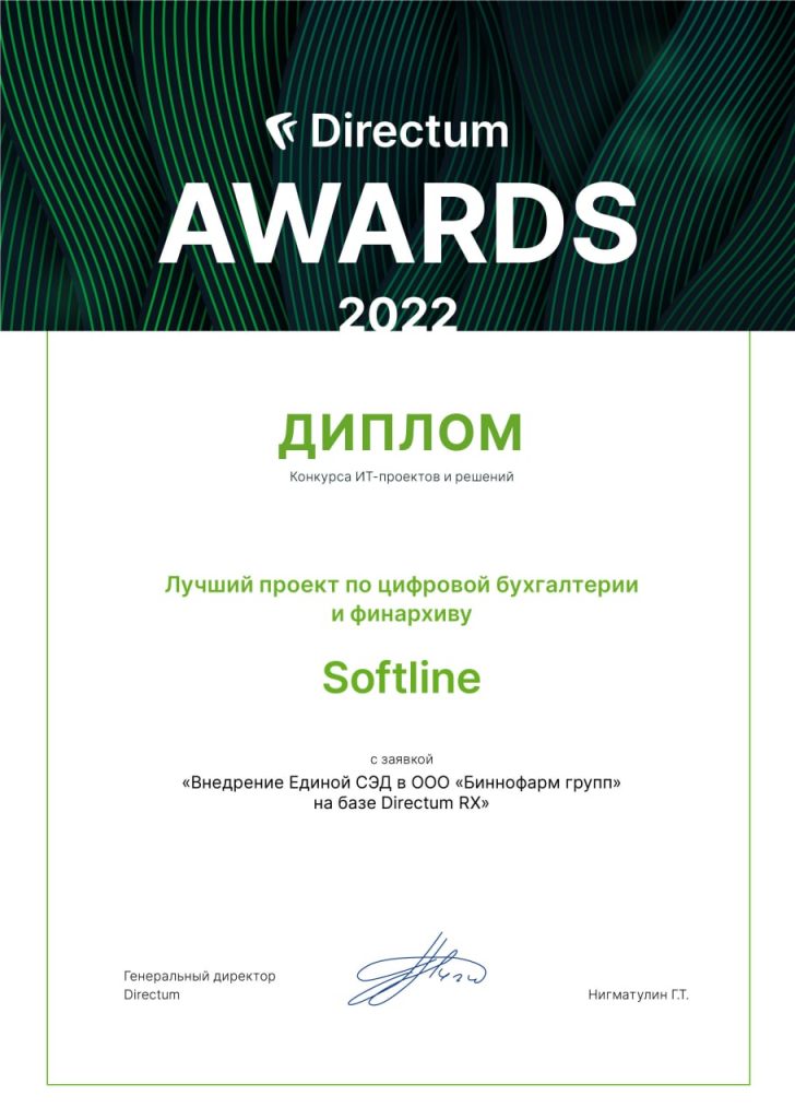 Кейс компании вошел в шорт-лист премии, получил высокую оценку экспертов и в результате был отмечен как лучший проект по цифровой бухгалтерии и финансовому архиву.