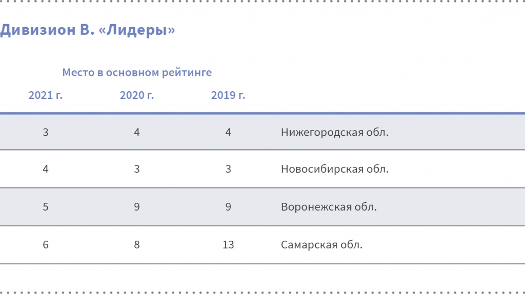 [1] Без ранжирования (регионы указаны по месту, занимаемом в 2020 г., и в алфавитном порядке, если такого места нет).