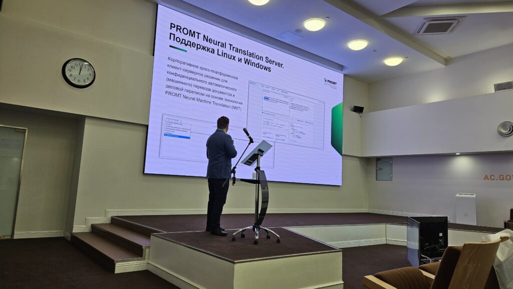 11 октября компания PROMT провела презентацию для корпоративных клиентов и партнёров, где представила свои новые решения, среди которых решение для профессиональных переводчиков PROMT Translation Factory, кросс-платформенное решение для автоматического перевода документов PROMT Neural Translation Server и инструмент для создания нейронных моделей на стороне клиента PROMT Neural Training Addon.