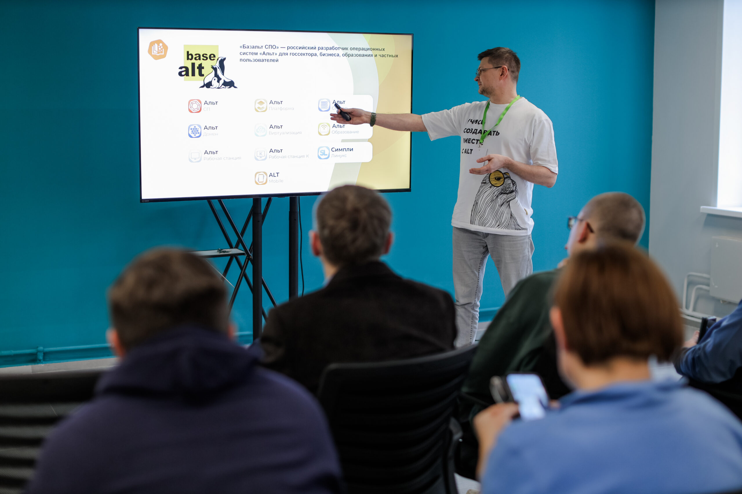 Андрей Бондаренко, старший специалист отдела образовательных проектов «Базальт СПО», рассказал об операционных системах семейства «Альт» и их применении в государственном секторе, бизнесе и образовании.