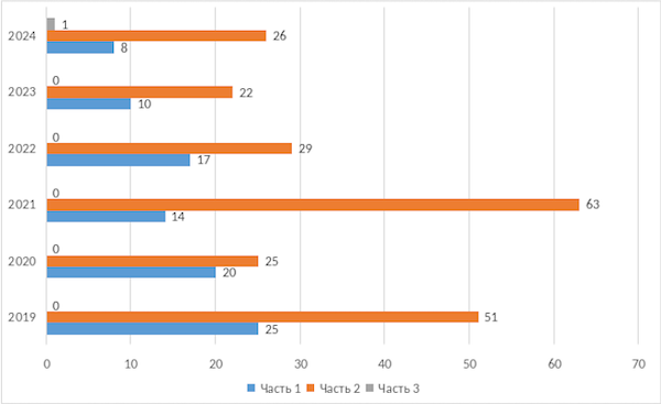 Рисунок 2. Общее количество судебных приговоров по статье 273 УК РФ за 2019–2024 гг.